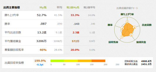 京都サラブレッドで勝ち上れる馬に出資するのは簡単ではありません。それでも、兄がOP馬なので勝ち上がれさえすれば先々まで楽しめそうです。